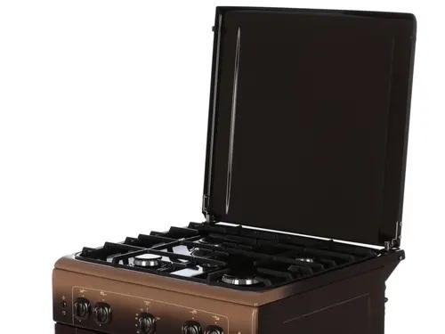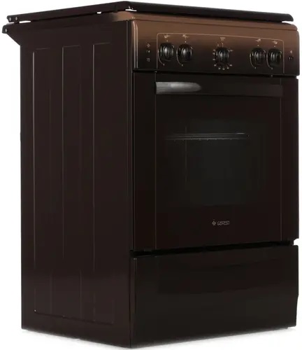 Плита газовая Газовая плита GEFEST 6100-02 0010 с корпусом эффектного темно-коричневого цвета гармонично впишется в интерьер домашней кухни, оснащенной мебелью соответствующего цвета. На эмалированной варочной поверхности данной модели, которую легко отмыть от загрязнений, находятся 4 различающиеся рабочей мощностью конфорки. Ниже расположен вместительный 52-литровый духовой шкаф с грилем и вертелом, оборудованный откидной дверцей с двойным стеклом и теплоизолированной ручкой.