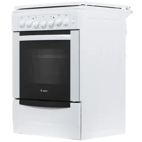 Духовой шкаф работает от электричества, что обеспечивает равномерное обжаривание и пропекание блюд. Для того чтобы помочь вам расширить меню, модель оснащена вертелом и грилем. За счет этого мясо, птицу или рыбу можно приготовить как на огне в домашних условиях. Для удобства духовой шкаф оснащен термостатом. Снизу от него располагается ящик для посуды. Регулируемые ножки позволяют устанавливать газовую плиту GEFEST 6102-02 на любой поверхности пола.