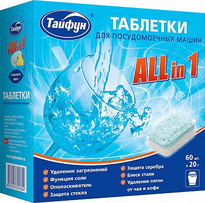 ч/с посудомоечным машинем ТАЙФУН 391824 Таблетки для посудомоечных машин