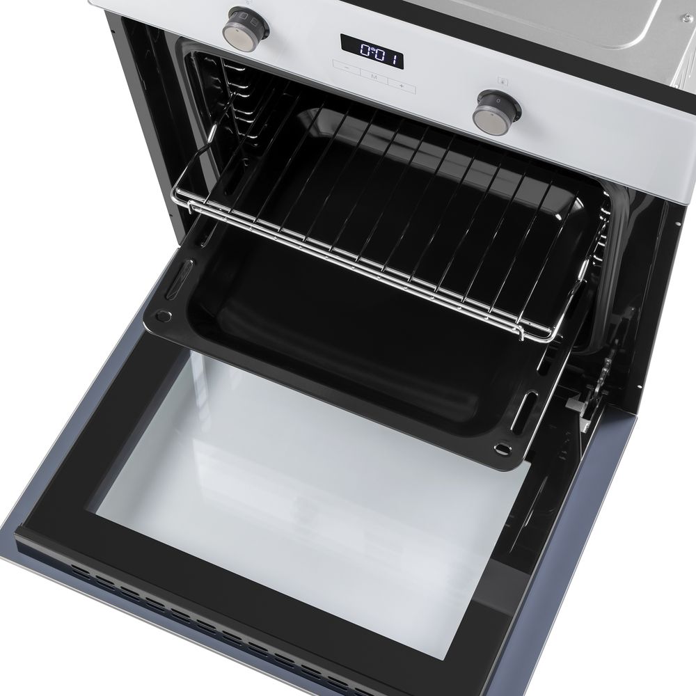 Встраиваемая духовка Духовой шкаф оснащен разнообразным набором функций для приготовления. Специальная эмаль не имеет пор, поэтому отталкивает жир, грязь и воду. Жир не прилипает к такой поверхности и облегчает уход за ней. За счет того, что шкаф имеет тройное стекло дверцы, нагревание внешнего стекла происходит медленно. Объем камеры - 57 литров.