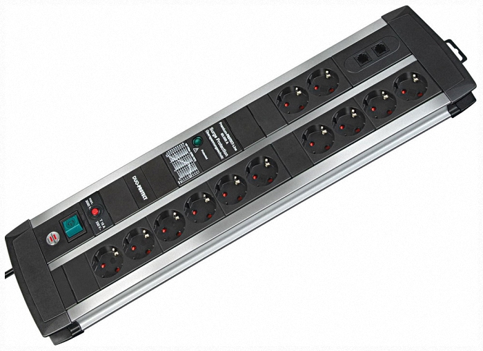 Сетевой фильтр Как защитить электросеть от высокого напряжения? В офисах и квартирах можно использовать сетевые фильтры Brennenstuhl. В них встроен предохранитель, способный надежно защитить подключенную технику и бытовые приборы. Для удобства использования модель серии фильтров Premium-Line немецкого бренда оснащена розетками в количестве восьми штук. Трехметровый гибкий провод черного цвета можно расположить в помещении вдоль стенки. Кнопка выключателя с яркой подсветкой. Сетевой фильтр Brennenstuhl имеет компактный размер: его длина составляет 38 сантиметров.