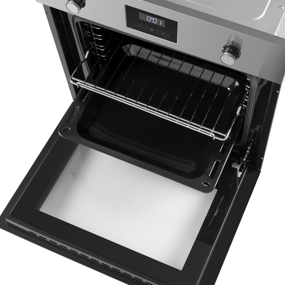 Встраиваемая духовка Духовой шкаф оснащен разнообразным набором функций для приготовления. Специальная эмаль не имеет пор, поэтому отталкивает жир, грязь и воду. Жир не прилипает к такой поверхности и облегчает уход за ней. За счет того, что шкаф имеет тройное стекло дверцы, нагревание внешнего стекла происходит медленно. Объем камеры - 57 литров.