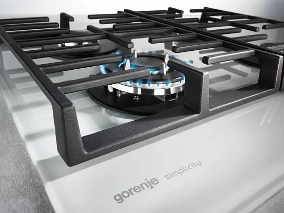 Встраиваемая поверхность Газовая варочная панель на закаленном стекле GT 6 SY2W оснащена чугунными держателями для посуды. За гладкой поверхностью легко ухаживать, решетки хорошо чистятся. Автоматический электроподжиг включается нажатием поворотного регулятора.