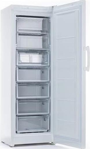 Холодильник Морозильный Indesit DSZ 5175 при высоте 175 см занимает немного места в помещении. При этом он имеет объем 261 л, который распределен на 7 ящиков. Пять из них являются выдвижными, а 2 оснащены откидными дверцами. При необходимости дверцу можно перенавесить для удобства размещения прибора в помещении.