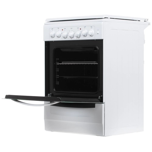 Духовой шкаф работает от электричества, что обеспечивает равномерное обжаривание и пропекание блюд. Для того чтобы помочь вам расширить меню, модель оснащена вертелом и грилем. За счет этого мясо, птицу или рыбу можно приготовить как на огне в домашних условиях. Для удобства духовой шкаф оснащен термостатом. Снизу от него располагается ящик для посуды. Регулируемые ножки позволяют устанавливать газовую плиту GEFEST 6102-02 на любой поверхности пола.