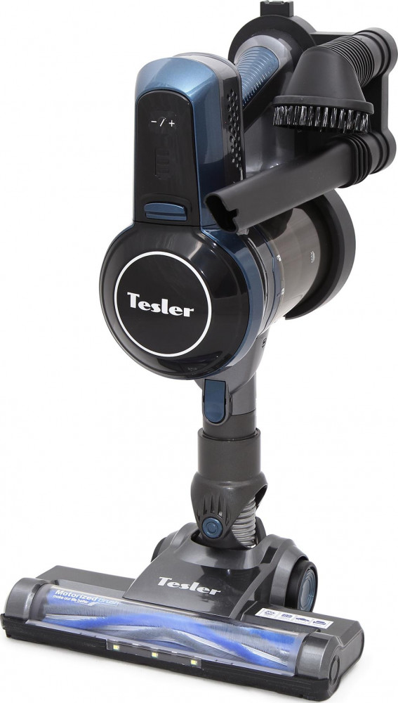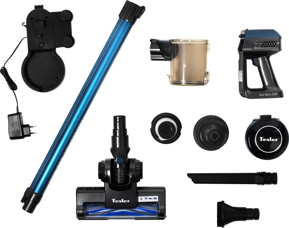 Пылесос Пылесос-электровеник Tesler Pure Storm – оригинальный вариант бытовой техники для уборки квартир. Представлен в беспроводном варианте, автономно работающем от литий-ионного аккумулятора в течение 35 минут. На корпусе ЗУ имеются два круглых колпака-держателя для насадок. Они фиксируют и удерживают насадки в вертикальном и горизонтальном положении. Для удобной работы устройство оснащено съемной трубой и дополнительными насадками. Это позволяет очищать пол, кресла, диваны, добраться до труднодоступных мест. Дополнительным удобством в эксплуатации пылесоса-электровеника Tesler Pure Storm является маркировка щетки, на которой указаны места, где она может применяться. Валик легко извлечь и почистить отдельно. Двигатель работает в двух режимах мощности. Компактный, не занимает много места, легко транспортируется, поэтому может использоваться не только в квартире, но и на даче. Подходит для чистки любых поверхностей. Может использоваться в автомобиле.