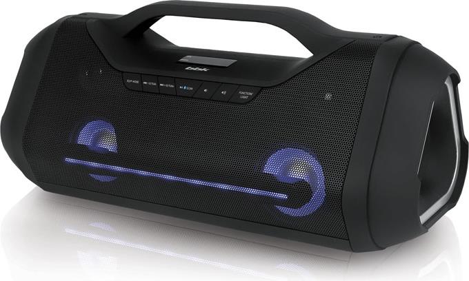 Специальное APP для AOSP и IOS для управления акустикой! Доступно в Google Play и Apple store. 2 USB-порта, один из которых предназначен для зарядки внешних USB-устройств. Функция Disco Light - 7 разных режимов подсветки с возможностью отключения дополняемой декоративной подсветки динамиков. Цифровой тюнер PLL. Сохранение в памяти до 30 радиостанций. Вход AUX IN. Удобная ручка  для переноски. Встроенный аккумулятор для автономной работы.