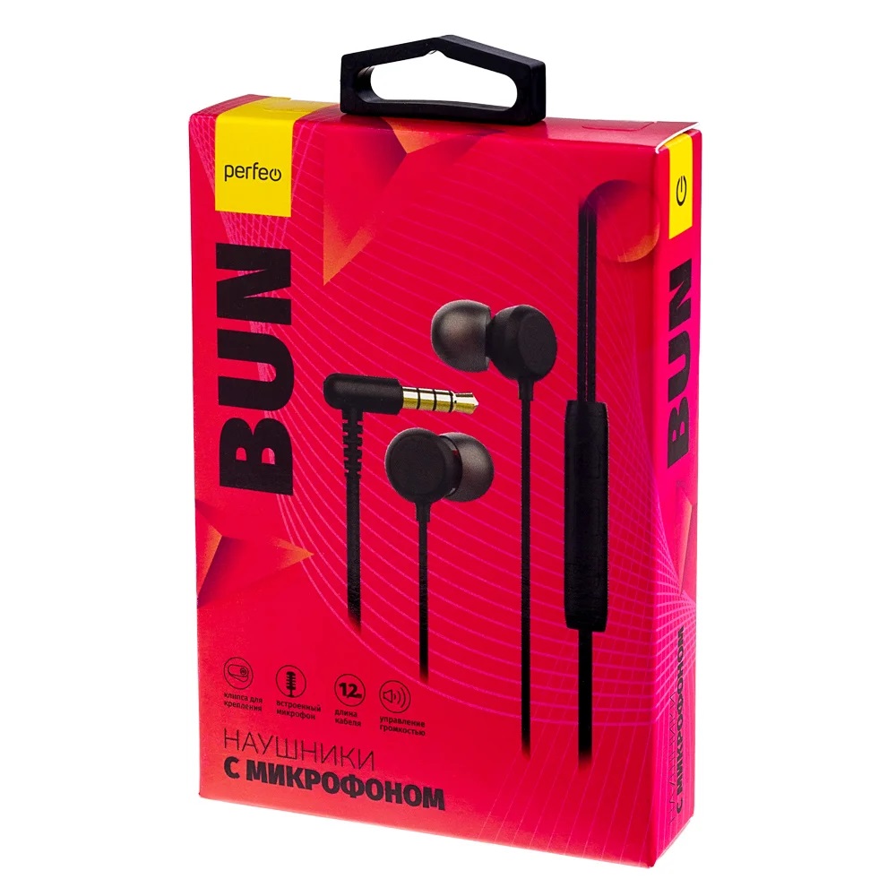 Наушники Perfeo наушники c микрофоном BUN черные упр. звуко